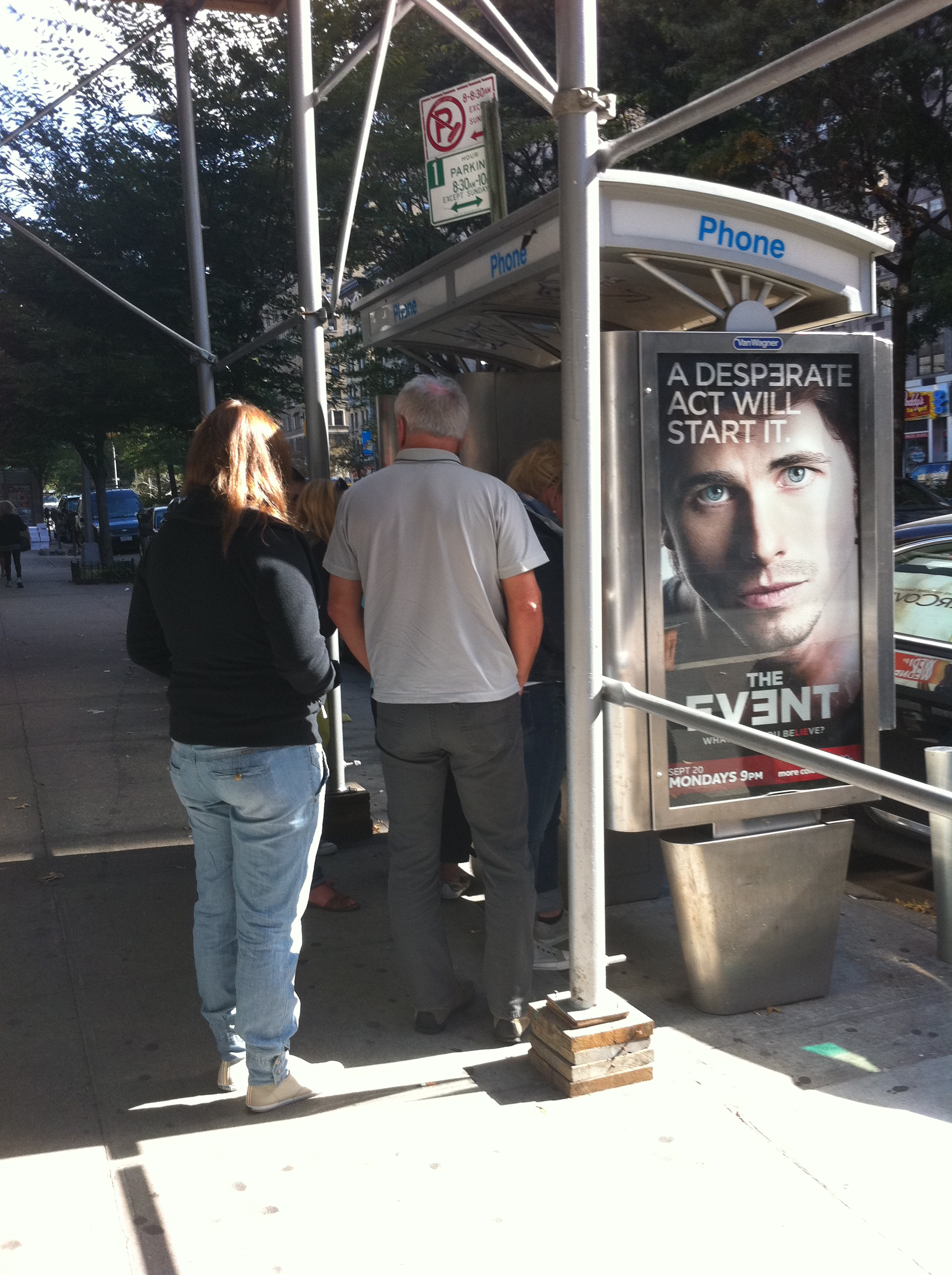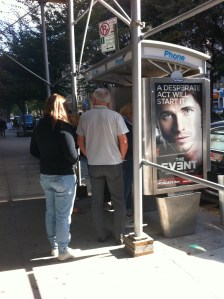 2. People actually still use pay phones. And, that there is sometimes a line for the phone. Who knew? Personally, I am not sure I want to ever use a NYC pay phone, probably because I would actually have to TOUCH it. But the advertising IS kind of hot.