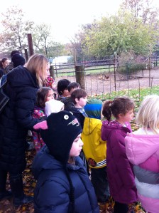 There were numerous animals on the farm and the representative from the museum took the children to see them and taught them various facts about the animals. She quizzed the students on their knowledge of animals and nature as well as patiently answering their many questions. Some of my favourites include: “What type of meat do you eat at Thanksgiving?” All of the students seemed to yell out at once “Chicken!”. Another question she asked was “What do you think you could make with milk?” More than one student answered “Chocolate Milk”. And finally, “What do you think feathers could be used for?”, the answer-“Crafts”. The students has an excellent knowledge of most things but I couldn’t help but think that some of their answers gave them away as true City Kids!