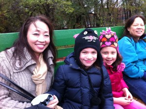 Being a newbie to the City, I have only been to Queens a few times. Notably, La Guardia International Airport and JFK Airport are in Queens, so that is where you fly in and out when going to and from New York City by air. I have also been to the NY Hall of Science which is a fabulous interactive science centre for children. What I had noticed in Queens was that there was a serious lack of nature, so I was a bit skeptical as to where we were going to find a farm in such an urban space. But it IS always an adventure, so I sat back and watched the graffiti walls and row of apartments disappear as we went further along the highway. Soon enough we had entered a beautiful area of fall coloured trees and landscaped houses. Just like that we seemed to be in the suburbs and out of the concrete jungle. It was very cool, not that the children really noticed as they were still fascinated by the bus and all of the small cars that we loomed over top of on the highway 😉