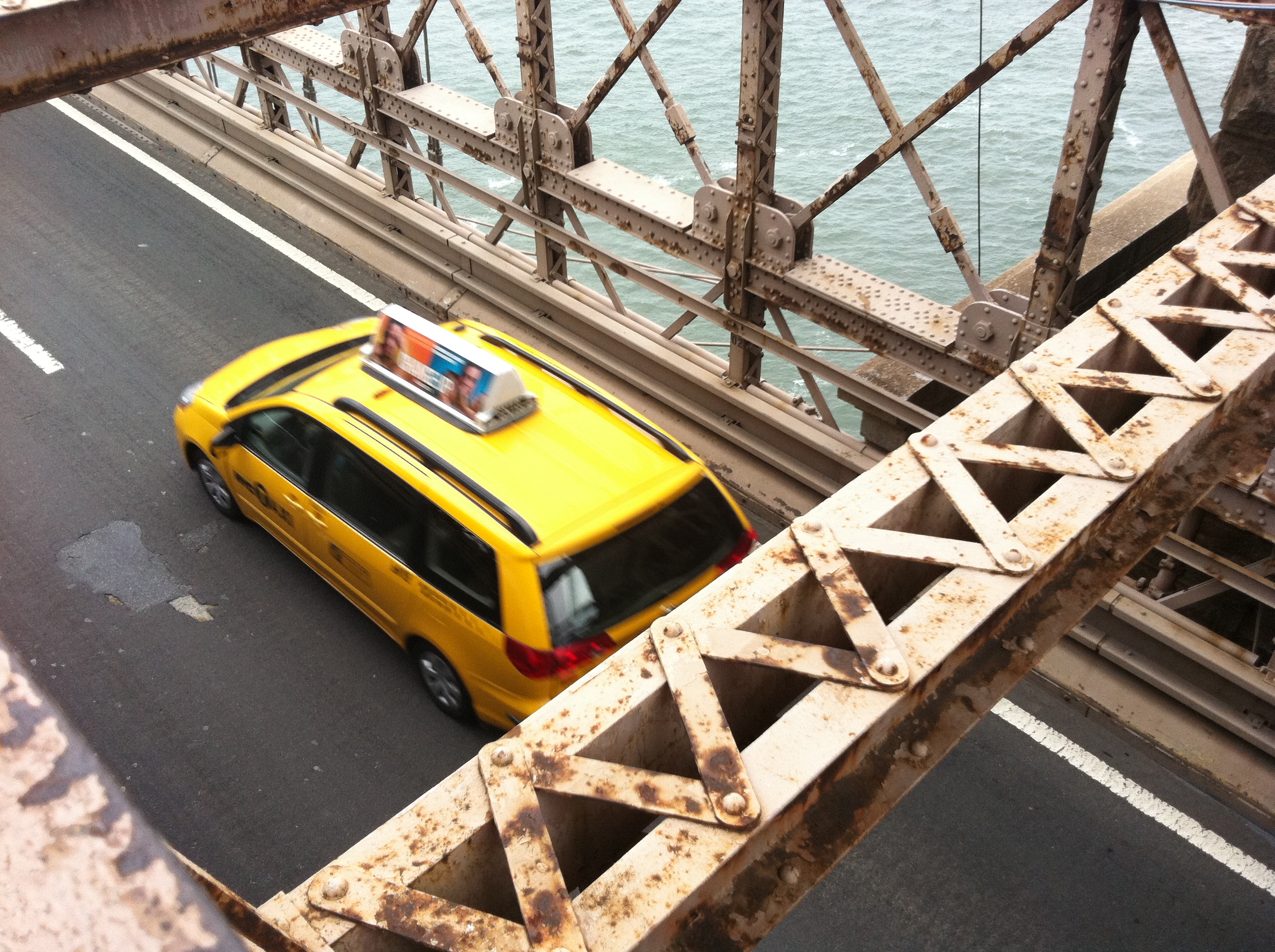 Traffic on the lower level of the Brooklyn Bridge