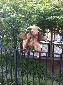 Creative stuffed animals in the park