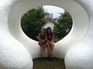 The girls hanging out in some art in the park (Dumbo)